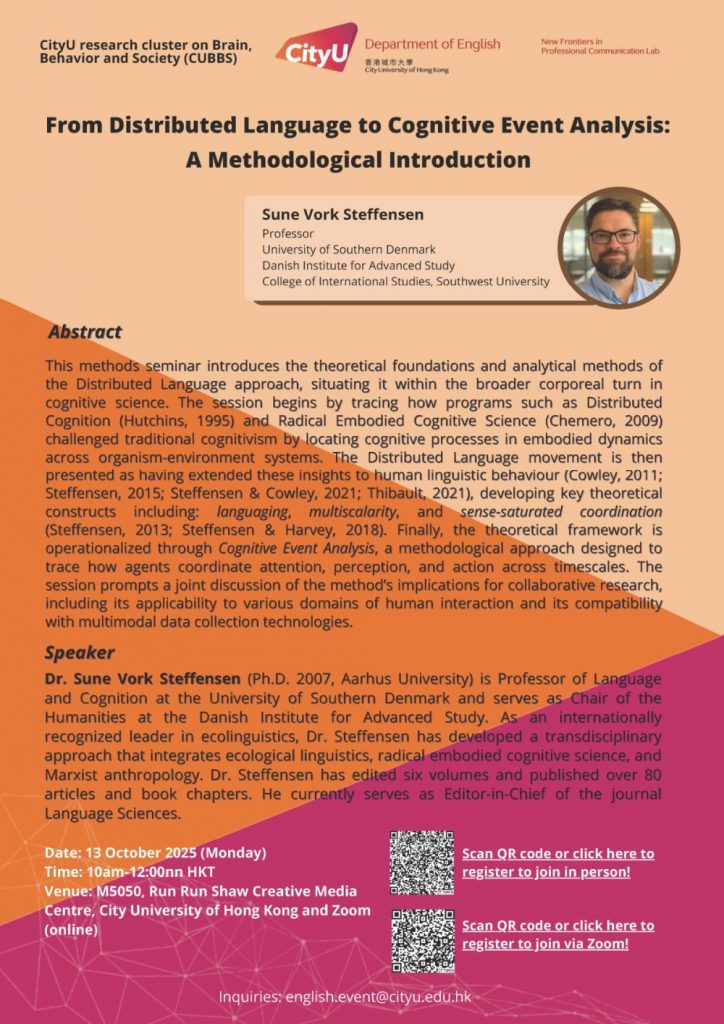 Brain, Behavior and Society Seminar: “From Distributed Language to Cognitive Event Analysis: A Methodological Introduction”