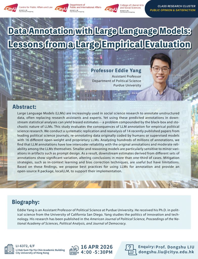Public Opinion and Satisfaction Seminar: “Data Annotation with Large Language Models: Lessons from a Large Empirical Evaluation”